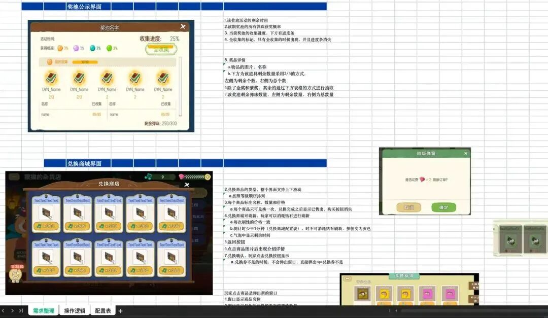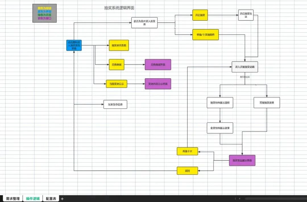 在系统设计实践中,一种高效的方法是通过Unity引擎直接搭建可交互Demo,结合Excel表格作为配套策划案。该方法尤其适用于UI/UE环节,以Demo演示为核心,文档为辅助说明。例如,抽奖系统的早期版本便采用此流程:开发者首先在Unity中构建交互界面,同步制作Excel配置表,涵盖功能说明、UE逻辑及数据配置。不同策划者的习惯与项目类型虽存在差异,但此模式通过直观演示降低了理解成本。