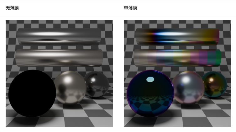 次表面散射引入多反弹随机行走算法,精准还原光线穿透材质时的散射效果,有效减少暗化伪影,虽略微增加渲染时长但大幅提升真实感;原理化BSDF与金属BSDF新增金属薄膜虹彩支持,通过电介质薄膜物理模拟实现真实虹彩效果,扩展材质表现力。