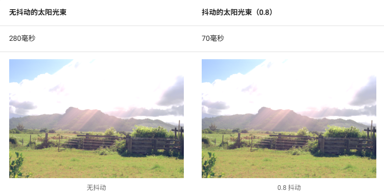 Sun Beams模式增抖动输入,以轻微噪点换取高速渲染。