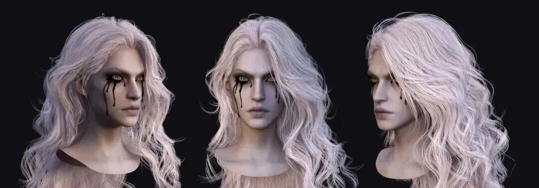 韩国3D艺术家黛西·金(Daisy Kim)的首个个人项目《渡鸦女神》,以Niji journey生成的风格为灵感基底,融合原创设计理念深化角色塑造。项目核心亮点在于服装图案的自主设计与发丝工艺的精细雕琢——服装纹样由作者亲自绘制,赋予角色独特视觉标识;头发制作则采用分步骤建模法:从基础造型雕琢到发片细分,再通过稀碎发丝添加细节,最终呈现出层次丰富、质感逼真的精致发型。