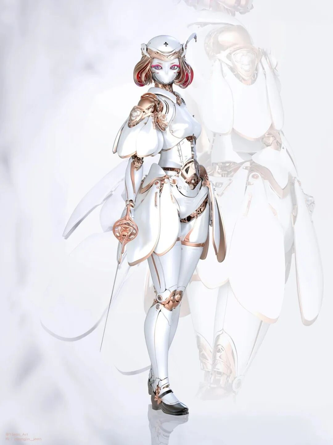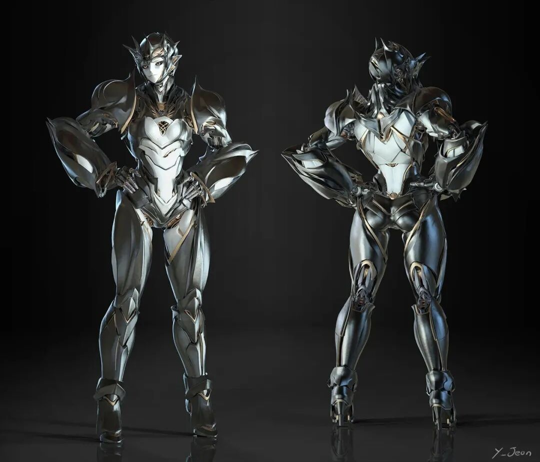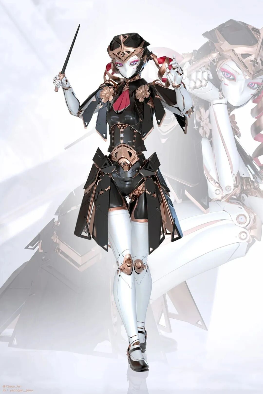 YeongJin Jeon是活跃于荷兰阿姆斯特丹的概念艺术家与硬表面艺术家,以“机甲×二次元”的跨界融合闻名。其作品巧合机械结构的精密逻辑与二次元美学的灵动特质——角色既展现硬核机甲的复杂齿轮、流线装甲等工业细节,又通过二次元标志性的柔美五官、夸张肢体语言赋予机械以人性温度。这种冷峻与温情的碰撞,在冰冷金属中注入跃动的生命力,形成独特的视觉张力,使观众在科幻硬核与青春幻想间感受到奇妙的审美平衡,成为数字艺术领域独树一帜的创作范式。