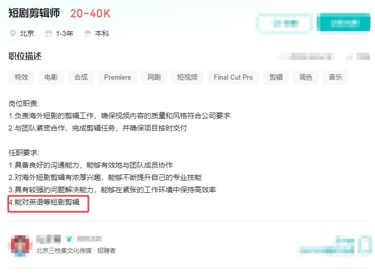 另外,星仔还发现,如果具备一定的英语阅读能力,能剪英语素材,薪资会更高。