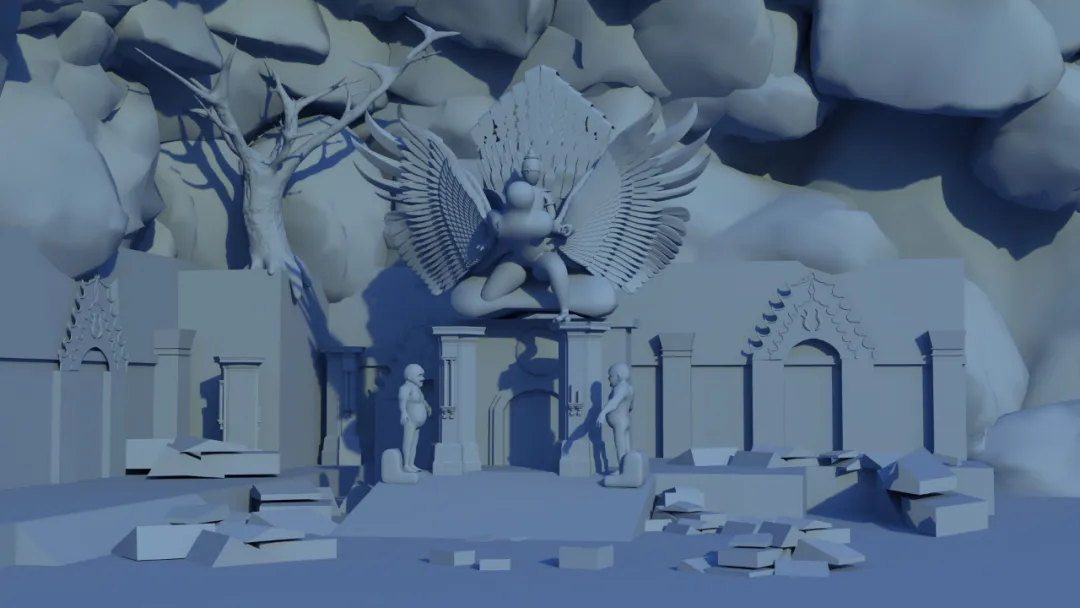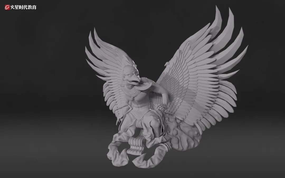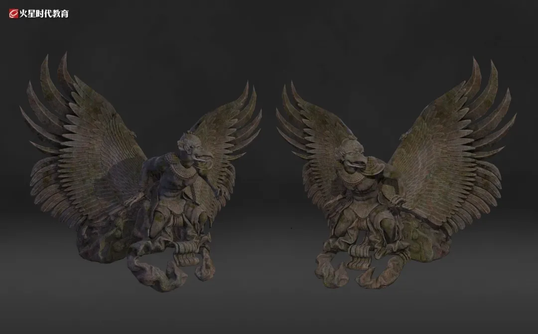 雕刻部分:本次场景案例中的三个石像、两棵树木,平分给了我们小组的五个成员,在max中确定好比例大小以后,将大型导入到ZB中进行雕刻细节,完成接下来的高模制作。