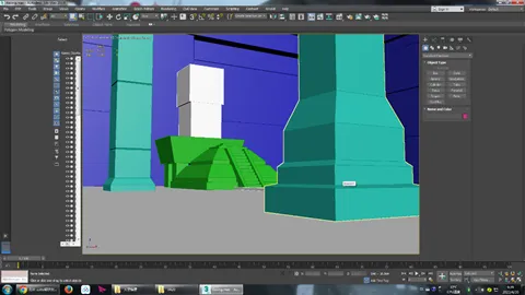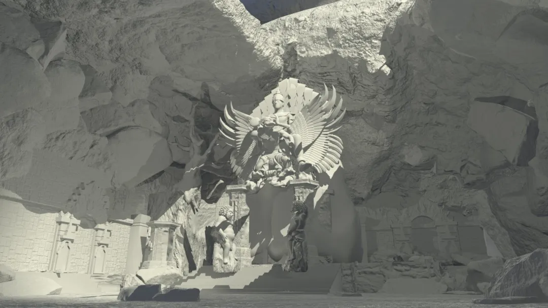 在前期的模型制作中,我们将需要进入ZB雕刻的模型分为了两类,强雕刻与弱雕刻。部分的石头的制作,我们会在3ds Max中先搭建好一个形状比较接近于原画的中模,然后进入ZB进行石头细节上面的雕刻。而对于原画中的不规则物体,比如最中心的白色正方体,其实在原画中是举着石头的雕像,这种模型的思路是,在3ds Max中搭建好一个非常粗略的模型(比如搭建雕像的办法就是用球体与正方体拼接一个大致的人的形体),之后再进入ZB进行高模的制作。