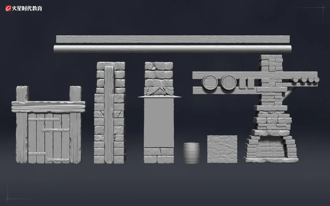 本次的次世代场景制作由于引入了ZB,所以在工作流程上面会和硬表面有些许的不同。我们选的原画中没有硬表面的物体,所以所有的模型都会用新的流程来制作。其实说是新的流程,其实也就是在前期的制作中有不同的地方,材质部分依然还是使用SP进行绘制。