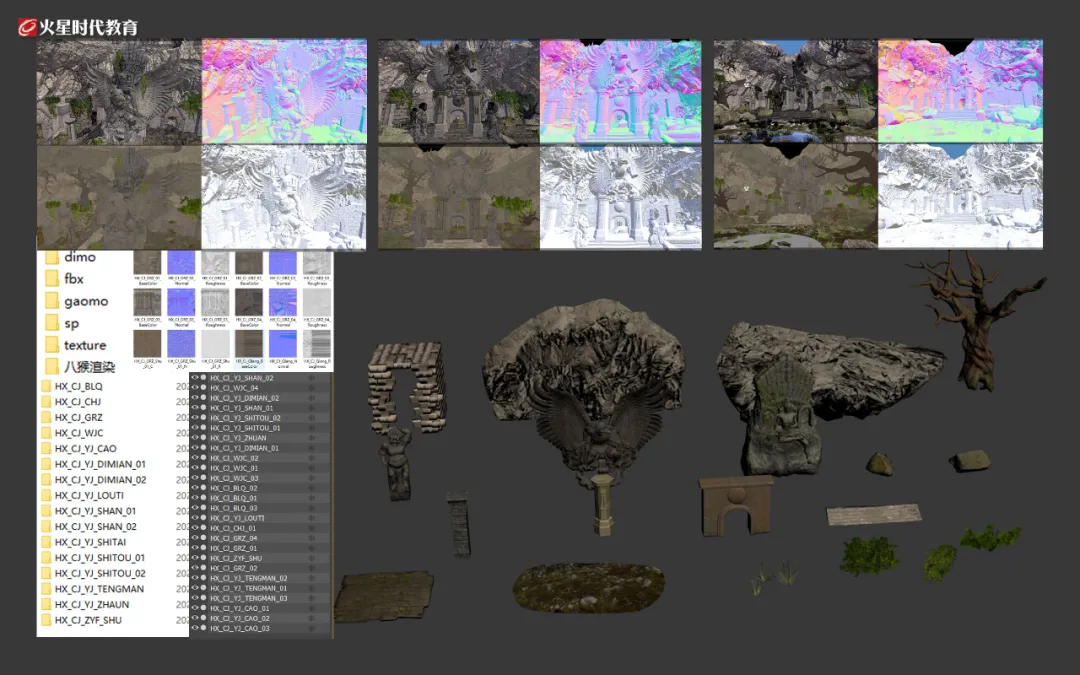 这个场景走的是一个PBR流程,模型具体制作步骤为: