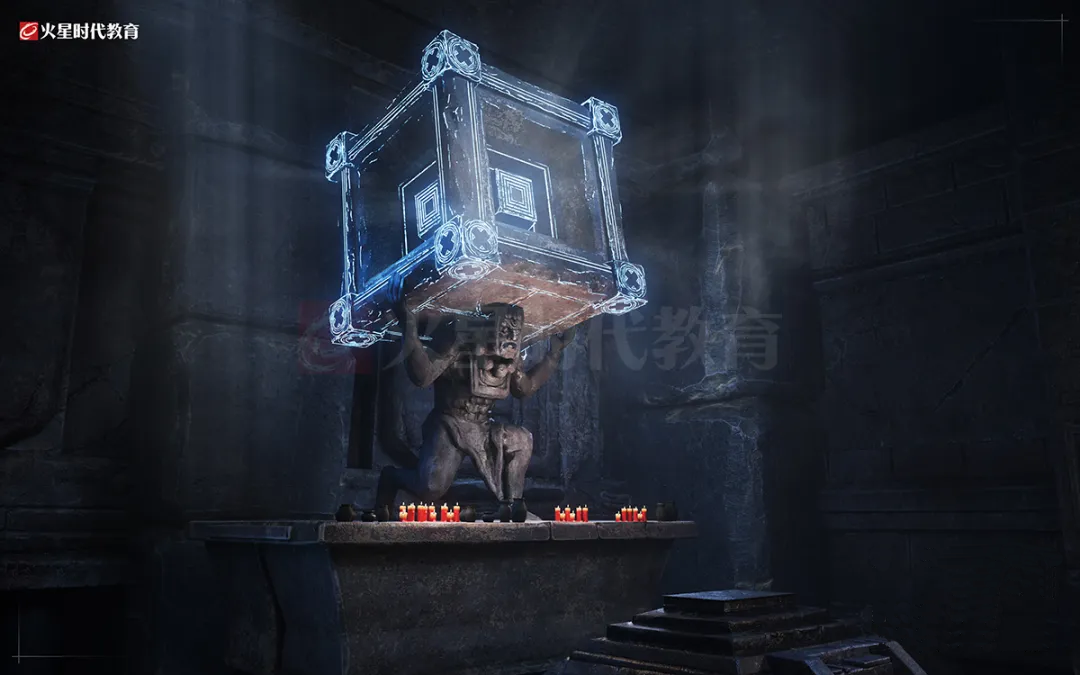 究其原因,第一是明暗关系表现得不明确;第二是暗部没有使用冷光源来处理掉死黑的部分;第三是,场景中有大量的蜡烛,但是蜡烛的烛光并不是单纯依靠自发光来完成,需要额外的补光才能出效果。