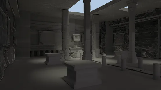 硬表面部分:我们的石柱、石门等道具,是在大型的基础上制作出中模,之后对中模进行卡线添加涡轮平滑,制作出高模,其中某些独特的细节再进到ZB进行雕刻。