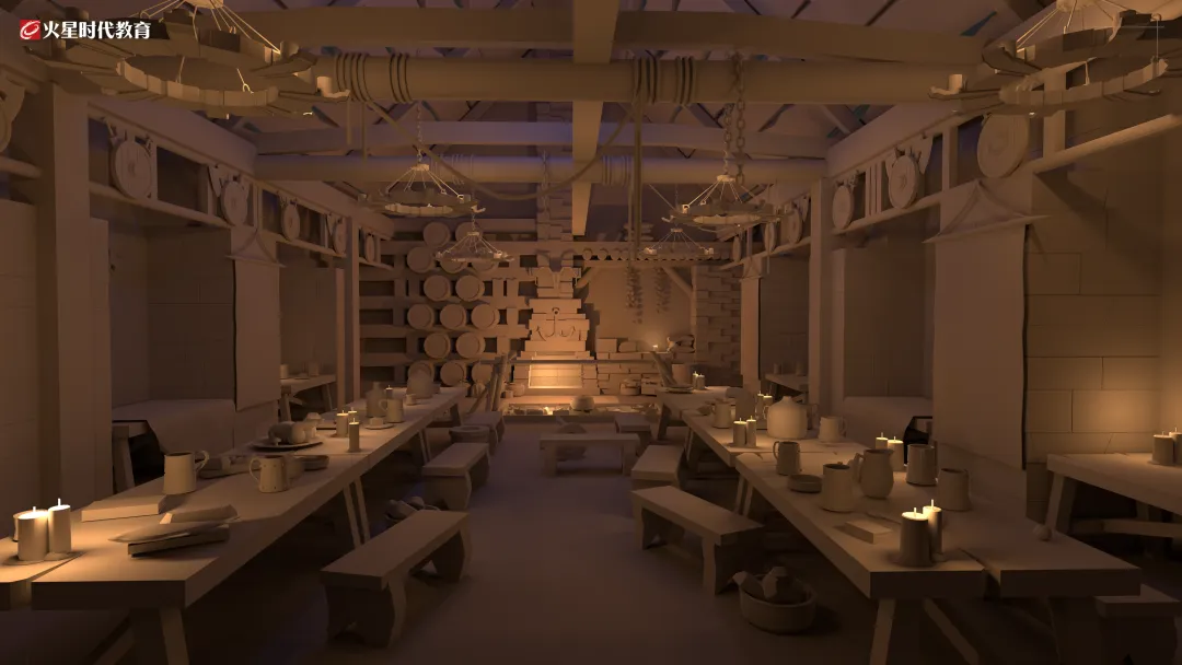 这个酒馆场景总共历时4周制作完成,先来看最终效果图: