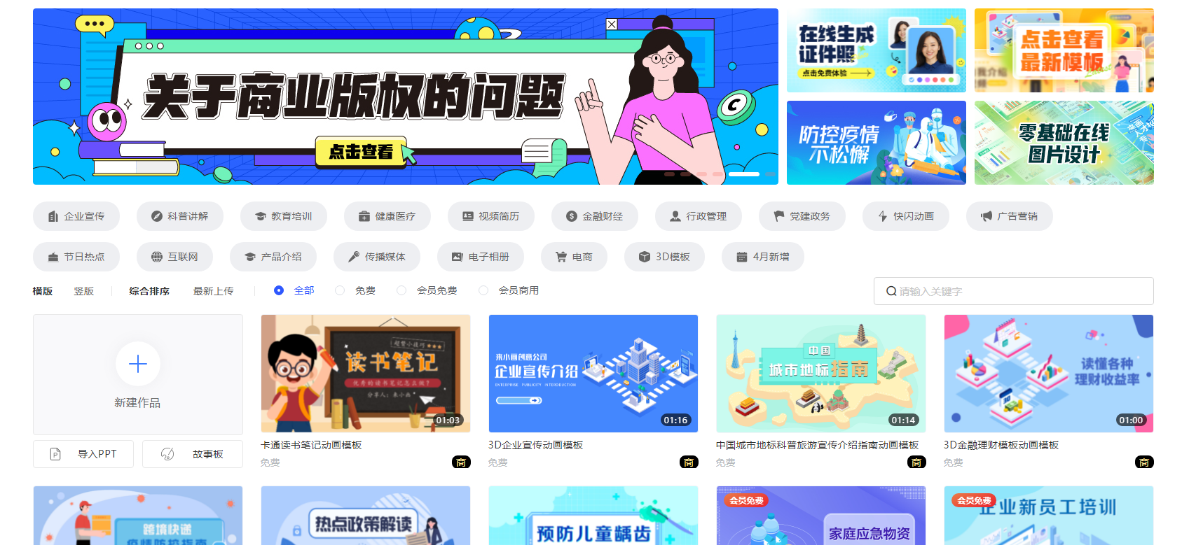 来画动画是一个强大的网站,提供制作动画视频、动画PPT等各种模板,非常实用。