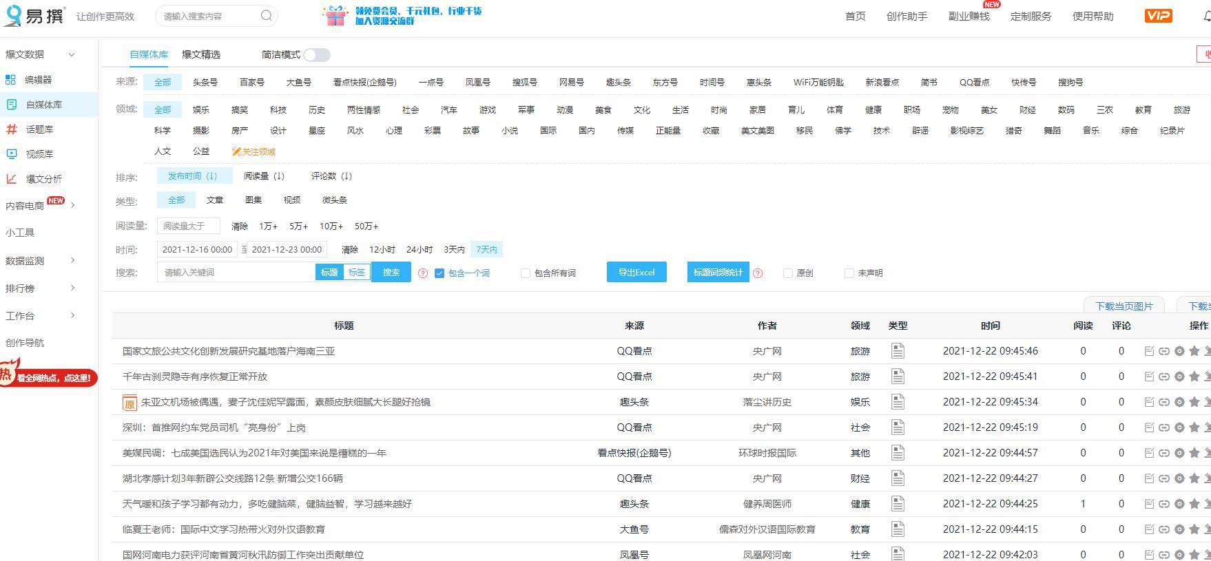 易撰是自媒体领域中的老牌神器,除了拥有强大的爆文库外,易撰的视频库也非常实用。它几乎覆盖了所有短视频平台,如抖音、快手、美拍、火山小视频、网易视频等,汇聚了海量视频素材,按领域细致分类,还支持一键批量下载,非常方便用来搜集素材。