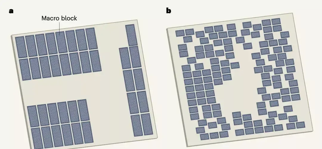 图|人类设计的微芯片平面图与机器学习系统设计的不同(来源:Nature)