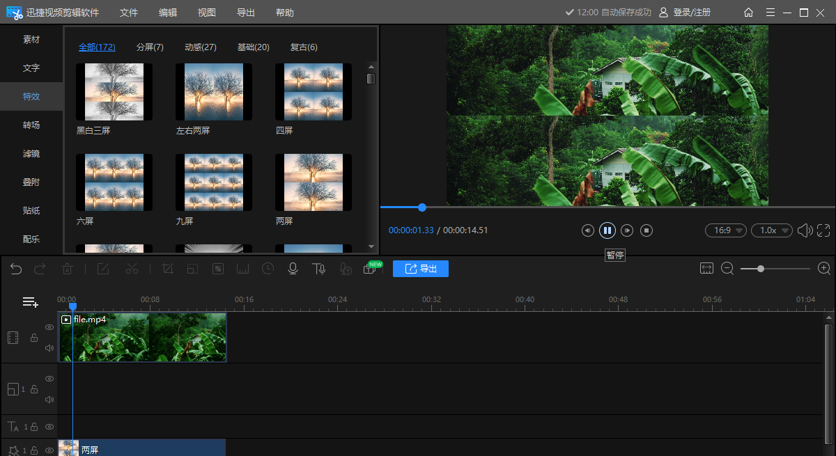 我们导入视频可以进行剪辑操作,满足基本使用需求不是问题,不过该软件内含有的特效比较少,我们可以自己导入特效素材使用。
