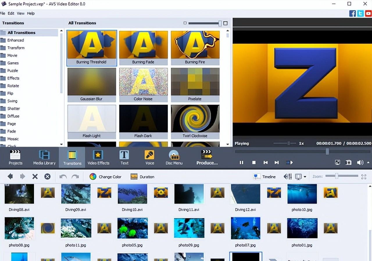 与上面的那一款不同,这款视频剪辑软件有着多达300个的绚丽转场、过度、字幕、场景效果,可以将影片、图片、声音等素材合成为视频文件,并且操作起来也比较简单。