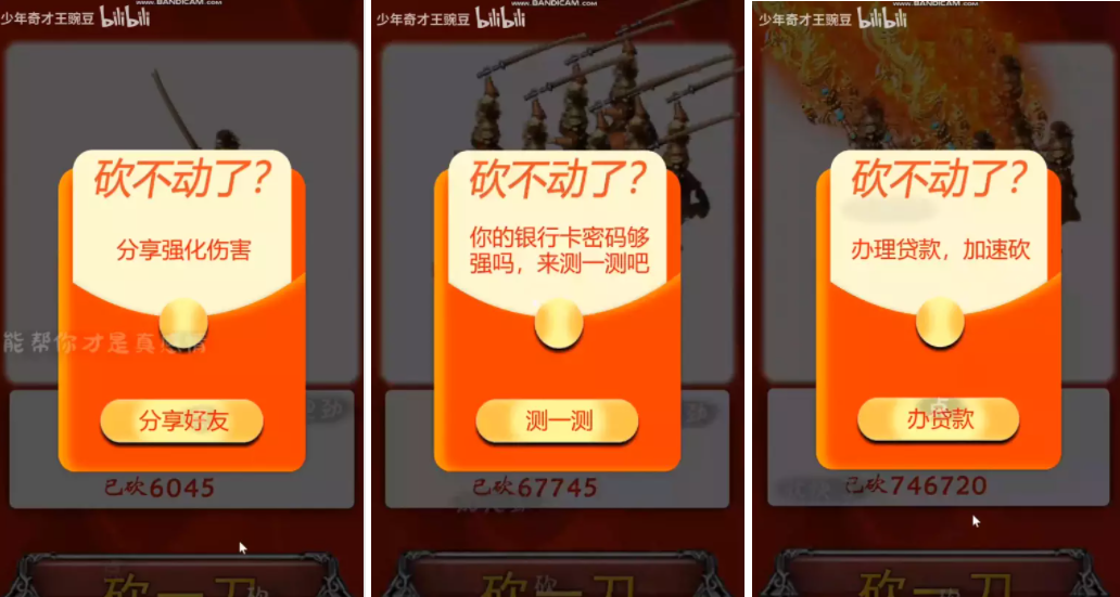 游戏中,玩家以领取礼包为目标,体验了一系列诸如看广告、分享好友、出售个人信息、贷款,甚至签订法人变更协议的「悲惨经历」。虽然题材荒诞,视觉演出也有些鬼畜,但这款游戏却相当符合本届CIGA Game Jam的开发主题——TRICK(欺诈、诡计、技巧)。