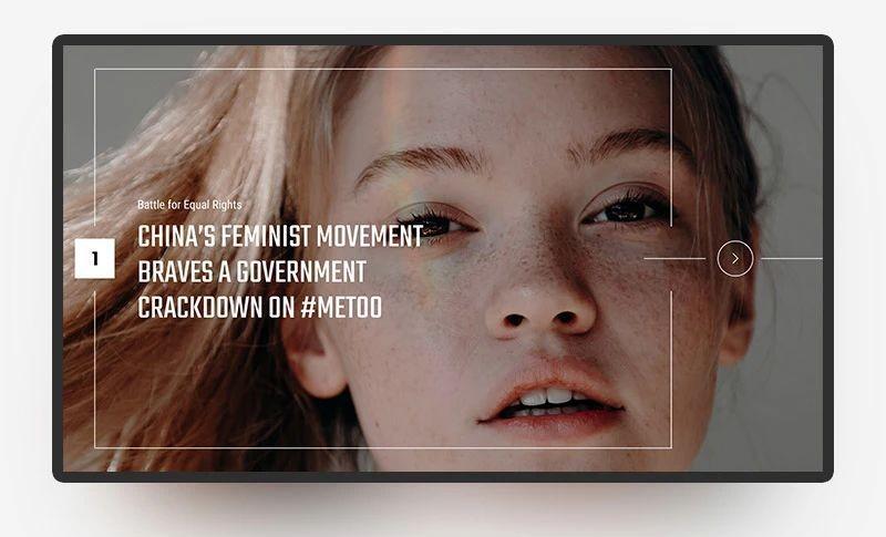 高清大图撑满全屏,加上展示性比较强的字体作为标题也是经典的搭配,但是在很多时候依然会让人觉得单调。线性元素的加入,不仅不会遮盖住作为视觉主体的图片,而且能够强化形式感,如果运用得当的话,还能作为视觉引导,强化交互,引导用户点击,非常有用。