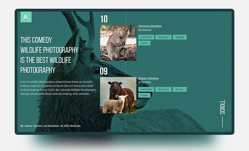 单色网站通常会以一种色彩为主,但是如果在单色网站中再加入几张明显是全彩的图片,会显得非常「扎眼」的,但是这也会让它们非常明显地吸引用户的注意力。这种设计同样是秉承「打破一条规则」的设计策略,当然前提是你的设计目标就是要凸显这写图片内容。