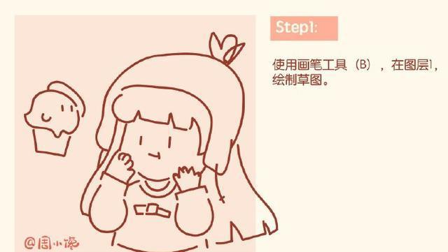 使用画笔工具(B),在图层1制作草图。
