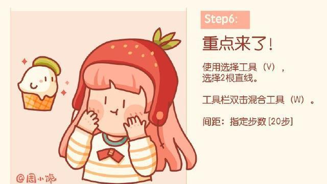 关键时刻到了!选择工具(),选择2根直线,双击混合工具(W),指定步数20步。