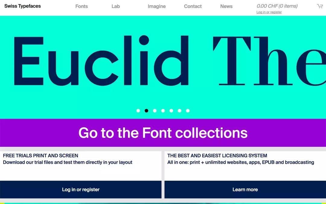 是一个大胆和视觉冲击字体供应商。与传统的黑色字体在白色背景上不同,他们使用了对比鲜明的紫色和绿色与黑色和白色来突出字体的轮廓和细节。