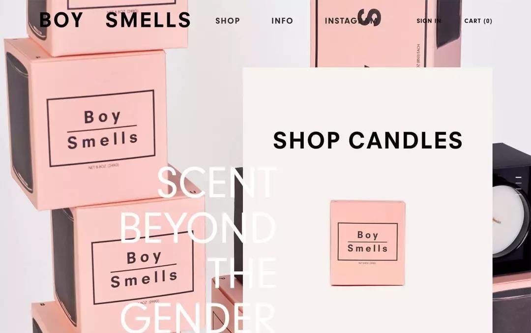 是一家知名的香烛供应商,他们的产品覆盖男性和女性用户,字体粗体,粉色非常符合品牌氛围。整个网站的设计很现代,也很感性。