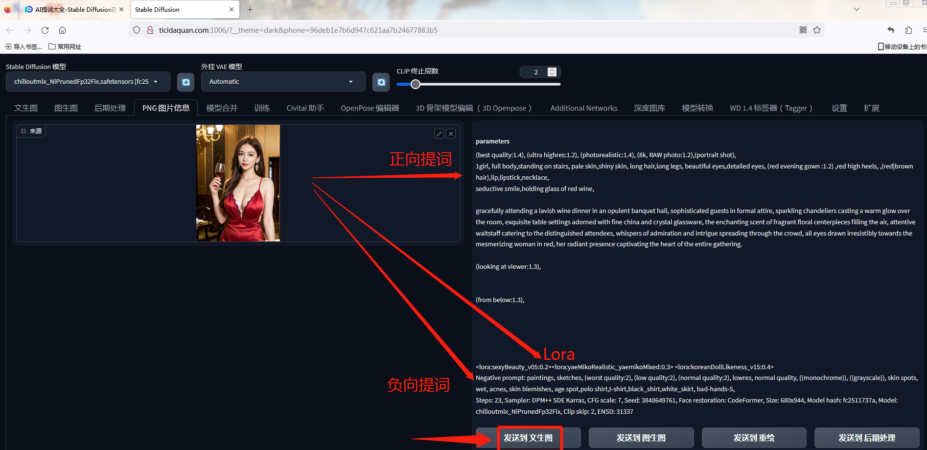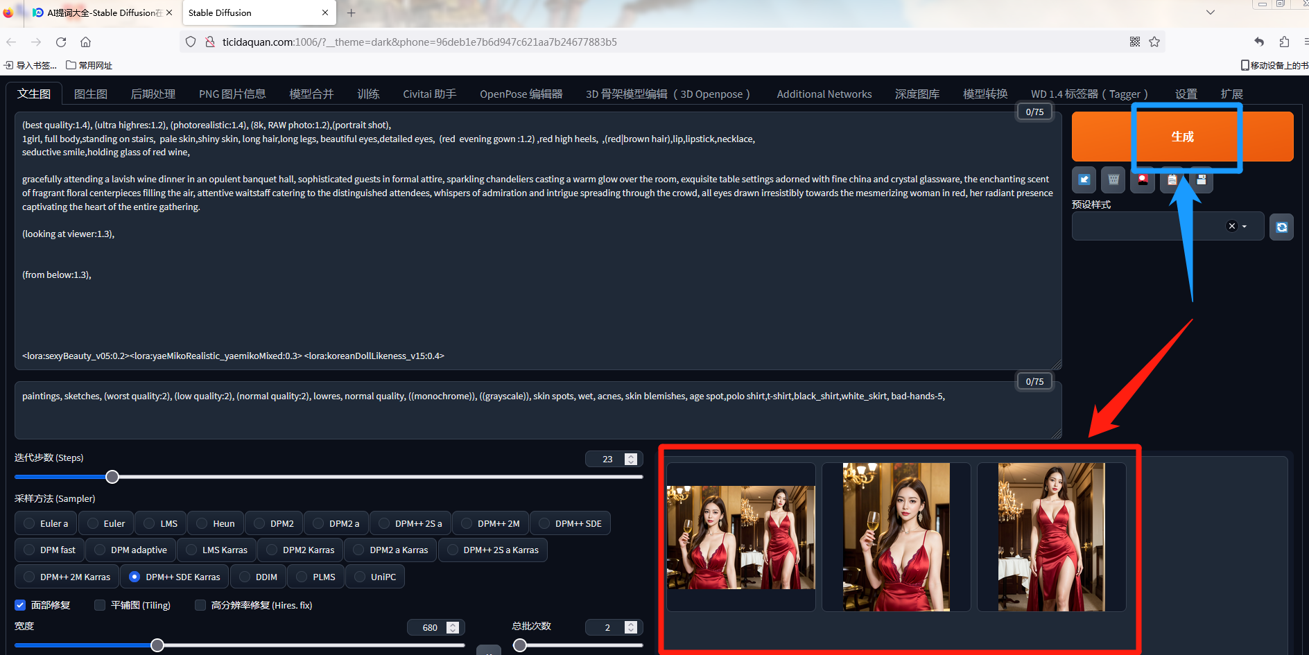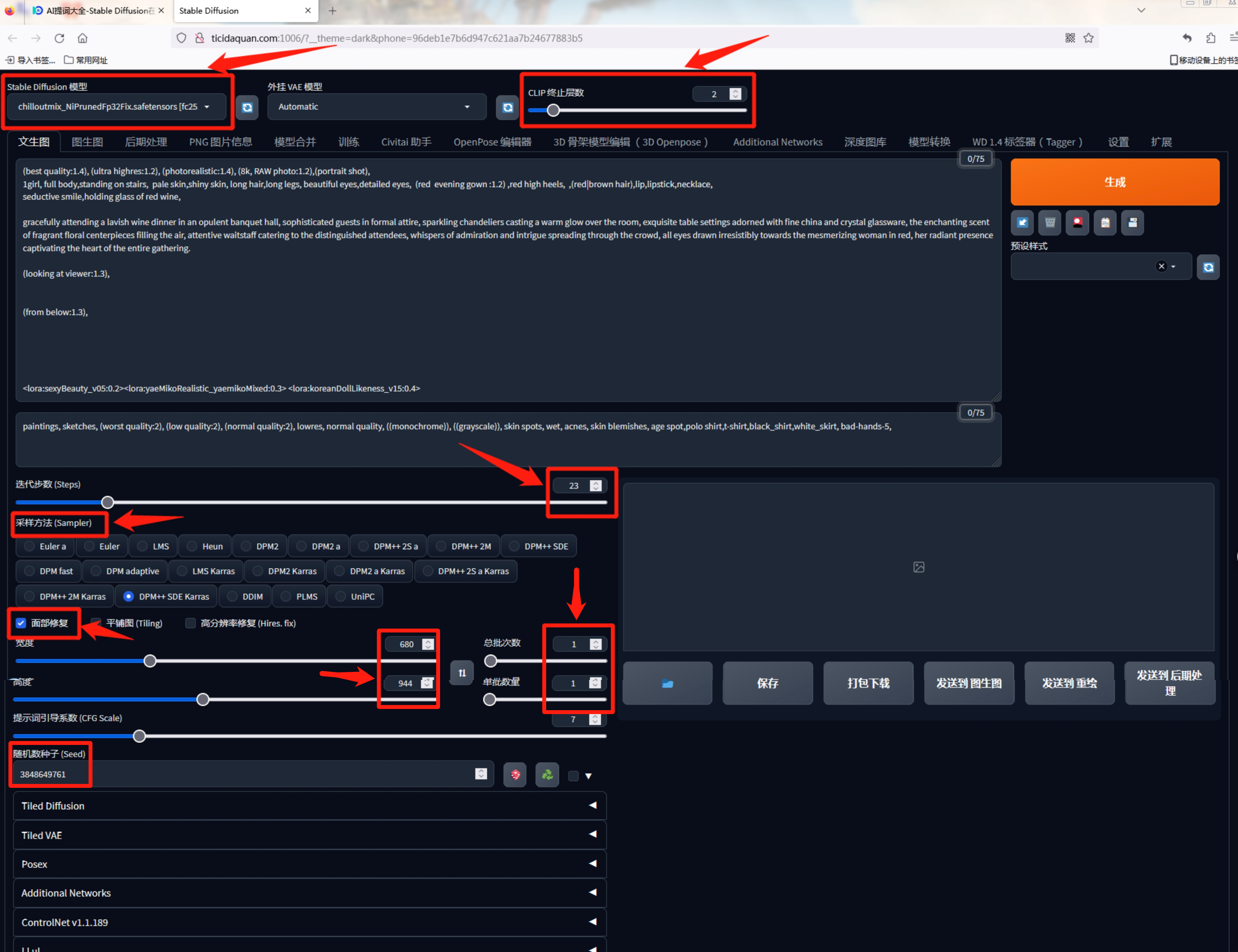 进入文生图后,仔细核对提词、模型和各参数的是否一致,避免出现意外情况。