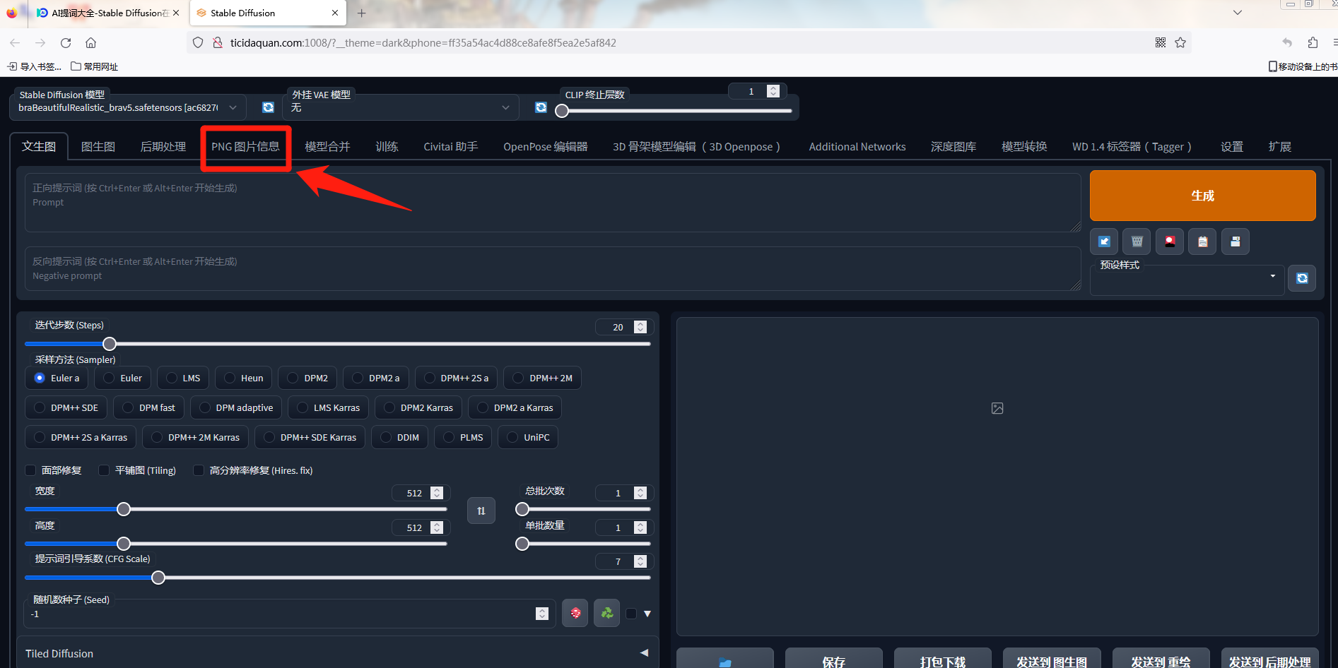 开始生成“AI女友”第一步,点击【PNG图片信息】。