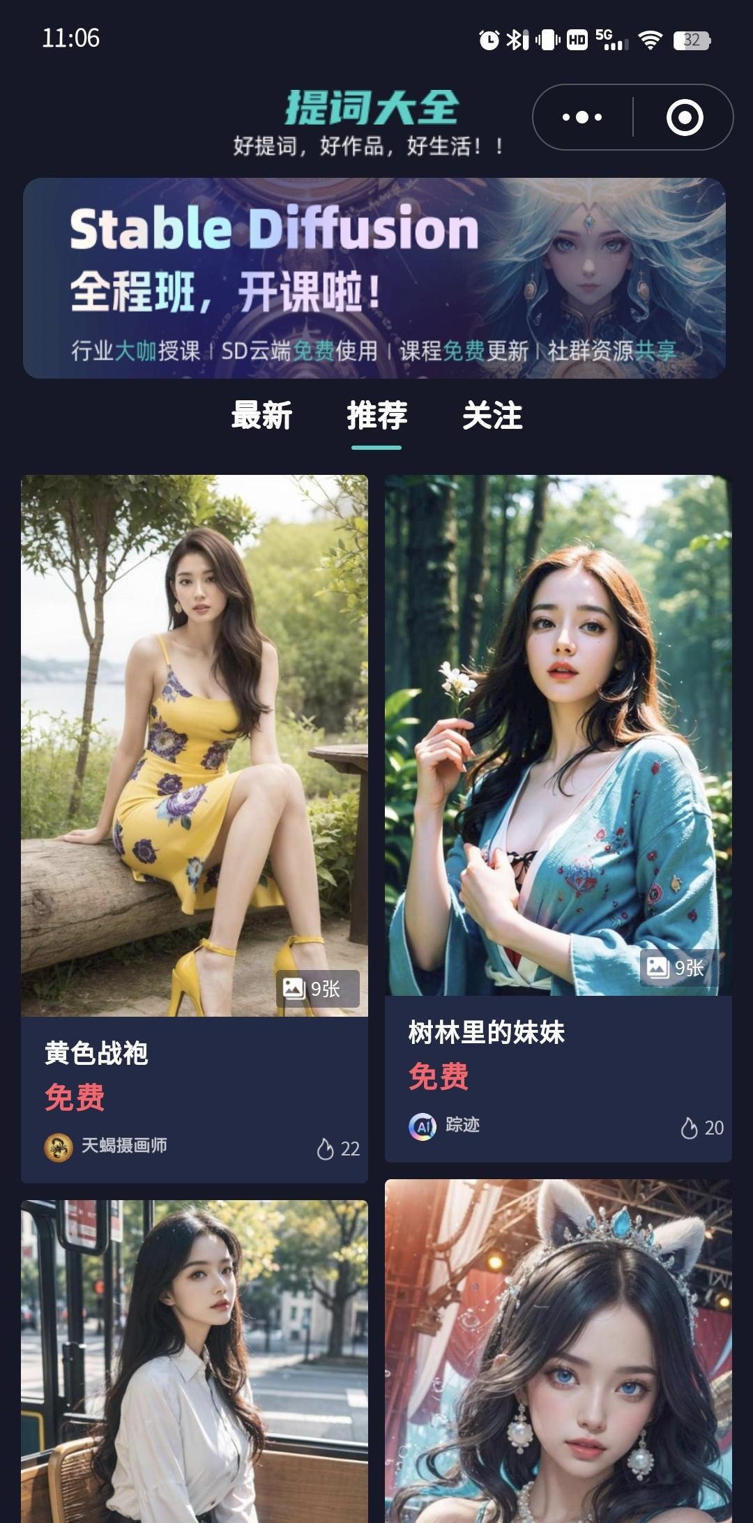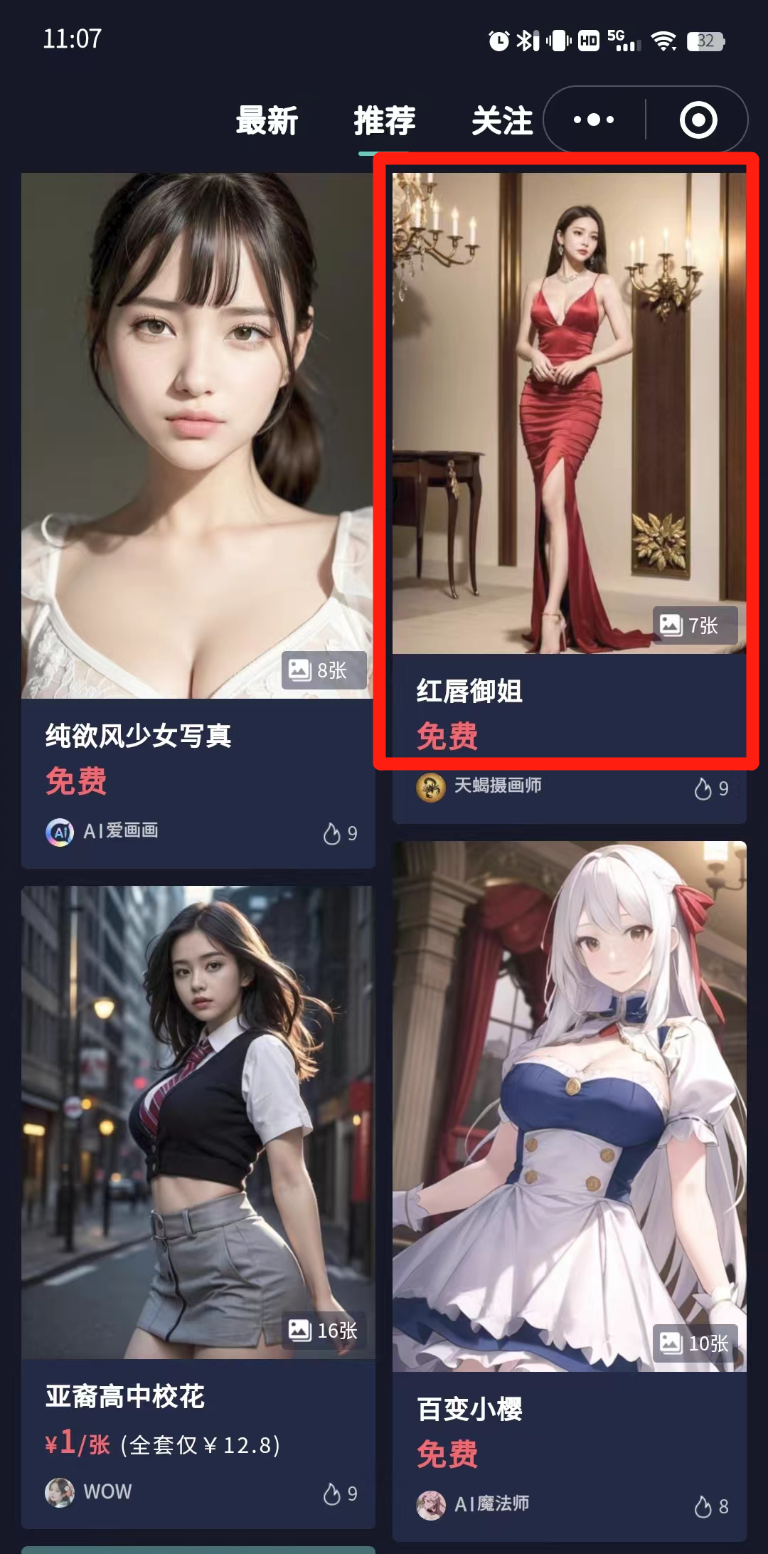 进入小程序,你将看到AI创作者上传的免费或付费图集↓↓↓