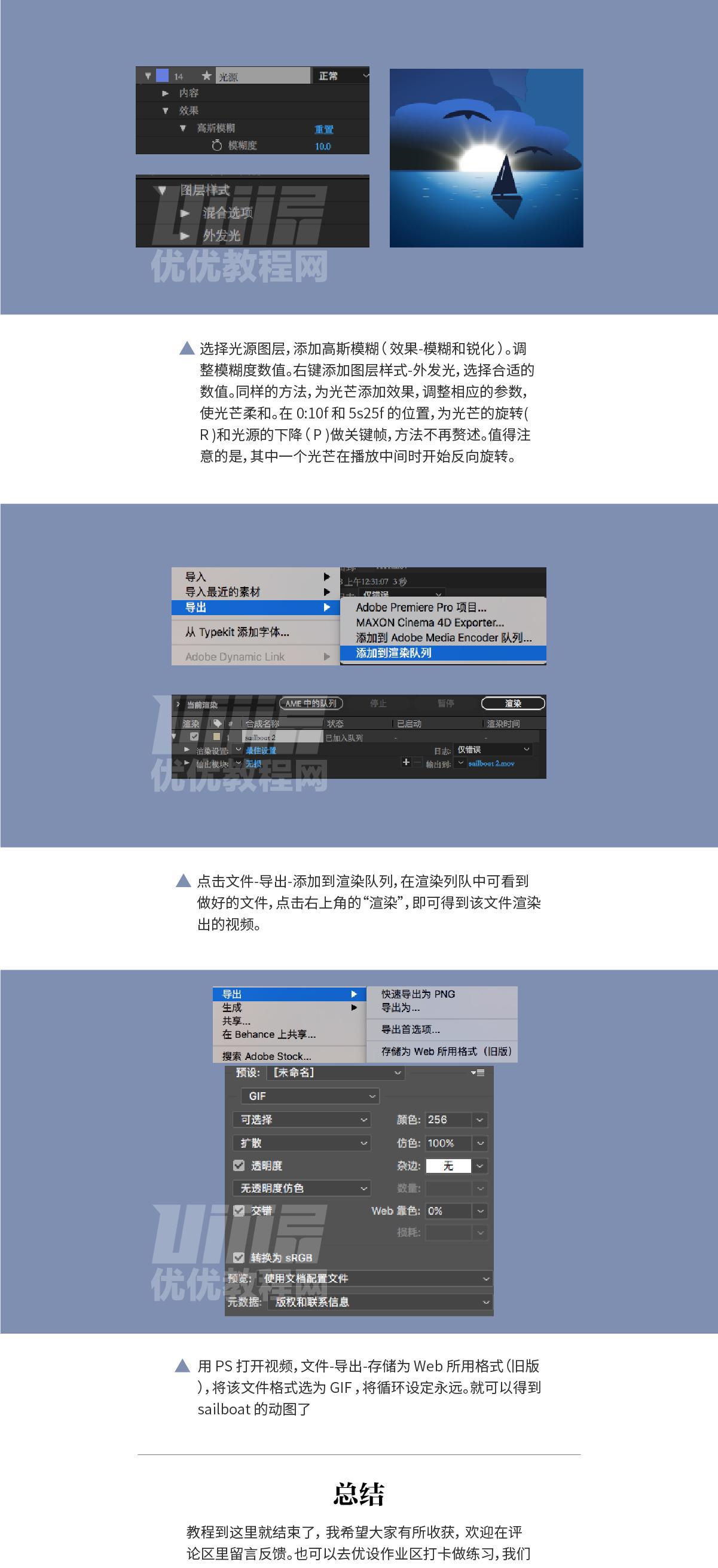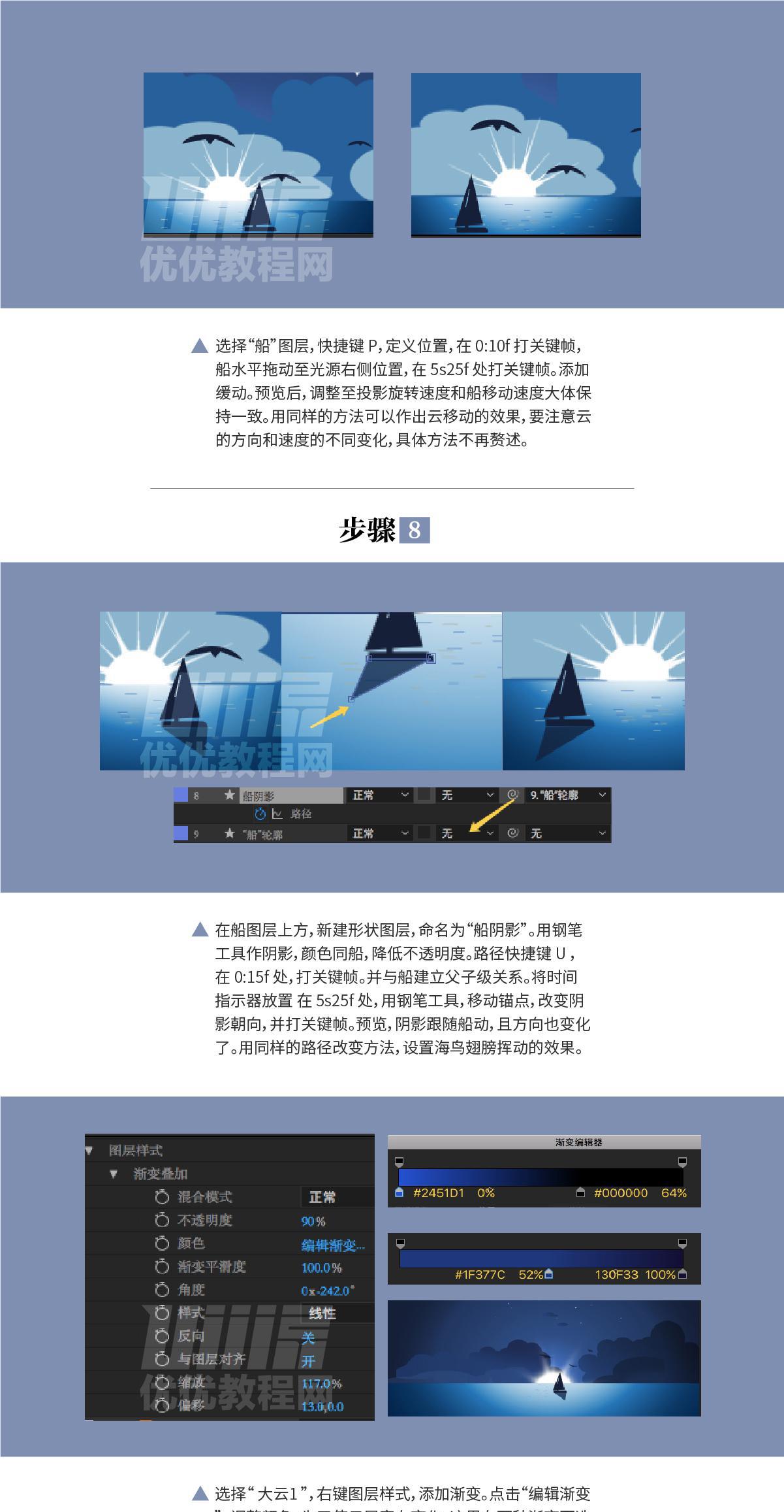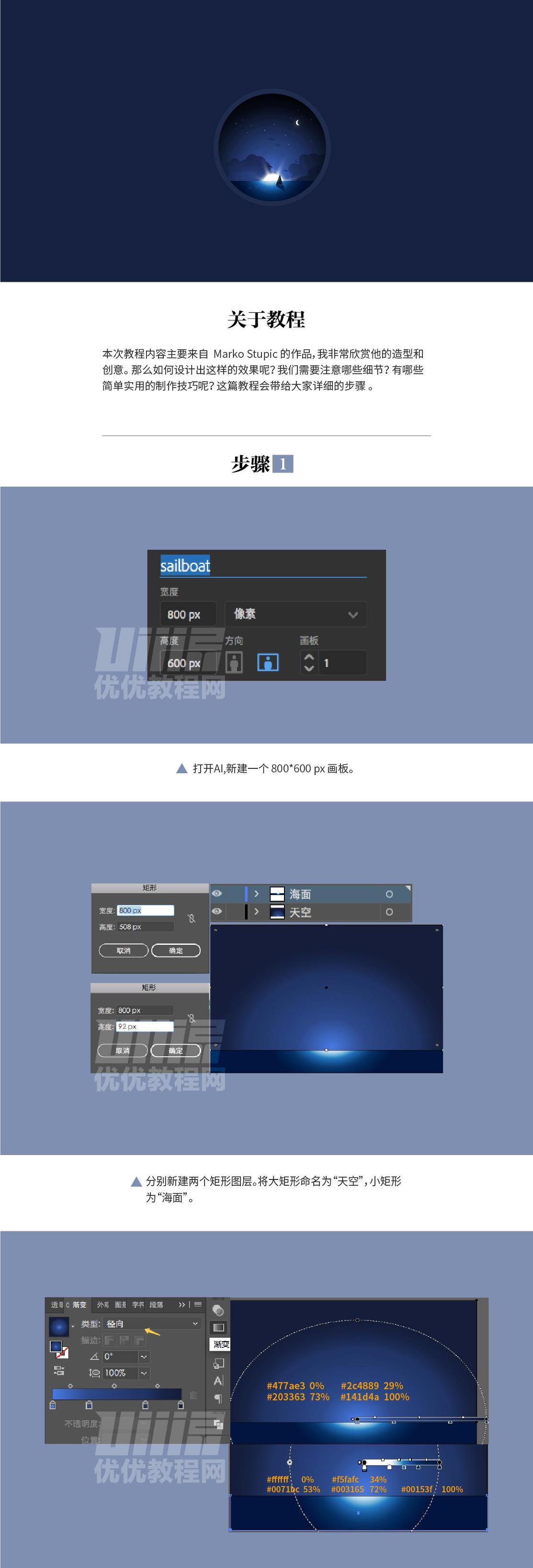 原图作者的场景构建和光影切换非常巧妙,并没有过多复杂的动效,却通过动静结合、虚实对比,给人带来了奇特的视觉享受。本次教程将分享如何运用AI常用工具和AE中的蒙版、图层技巧,创作出有趣的夜航动画。