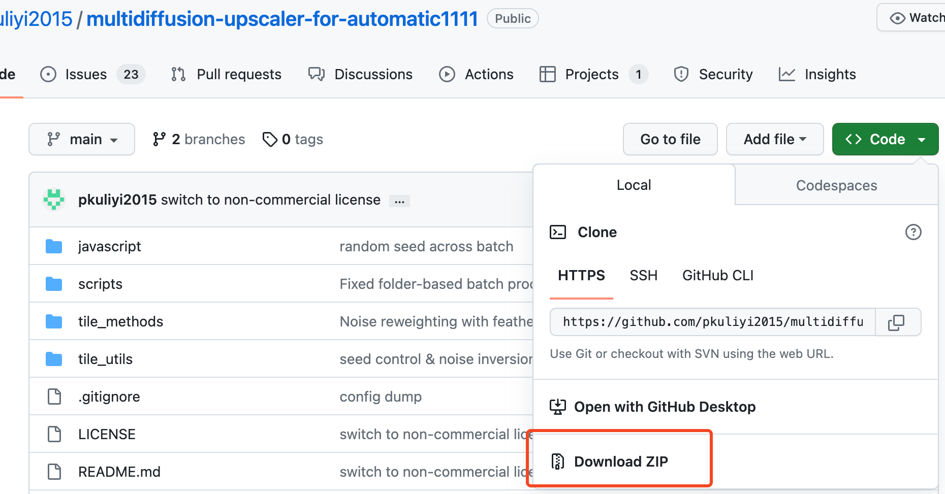 压缩包安装:打开项目地址,点击code,点击download zip,解压到extensions文件夹即可。后续更新可点击SD拓展-在线更新自动下载更新。