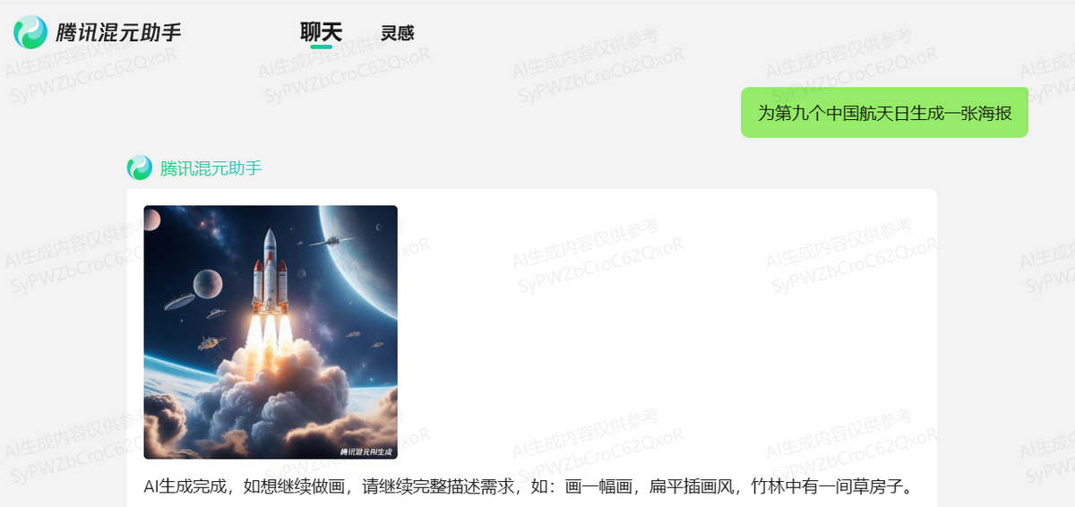 腾讯混元涉及多种功能,其中图片生成表现优异。参加中国航天日AI海报征集活动,混元大模型将为您呈现丰富创意,轻松生成个性化海报。
