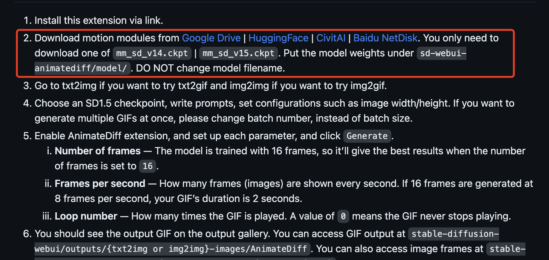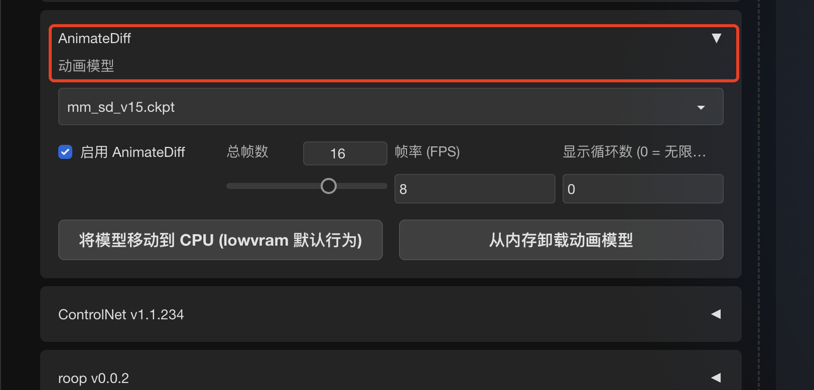 根据官方介绍,只需下载一个模板即可,下载链接为:https://huggingface.co/guoyww/animatediff/tree/main。下载完模板后,放入扩展目录下的model文件夹中,重启Stable Diffusion即可看到插件。