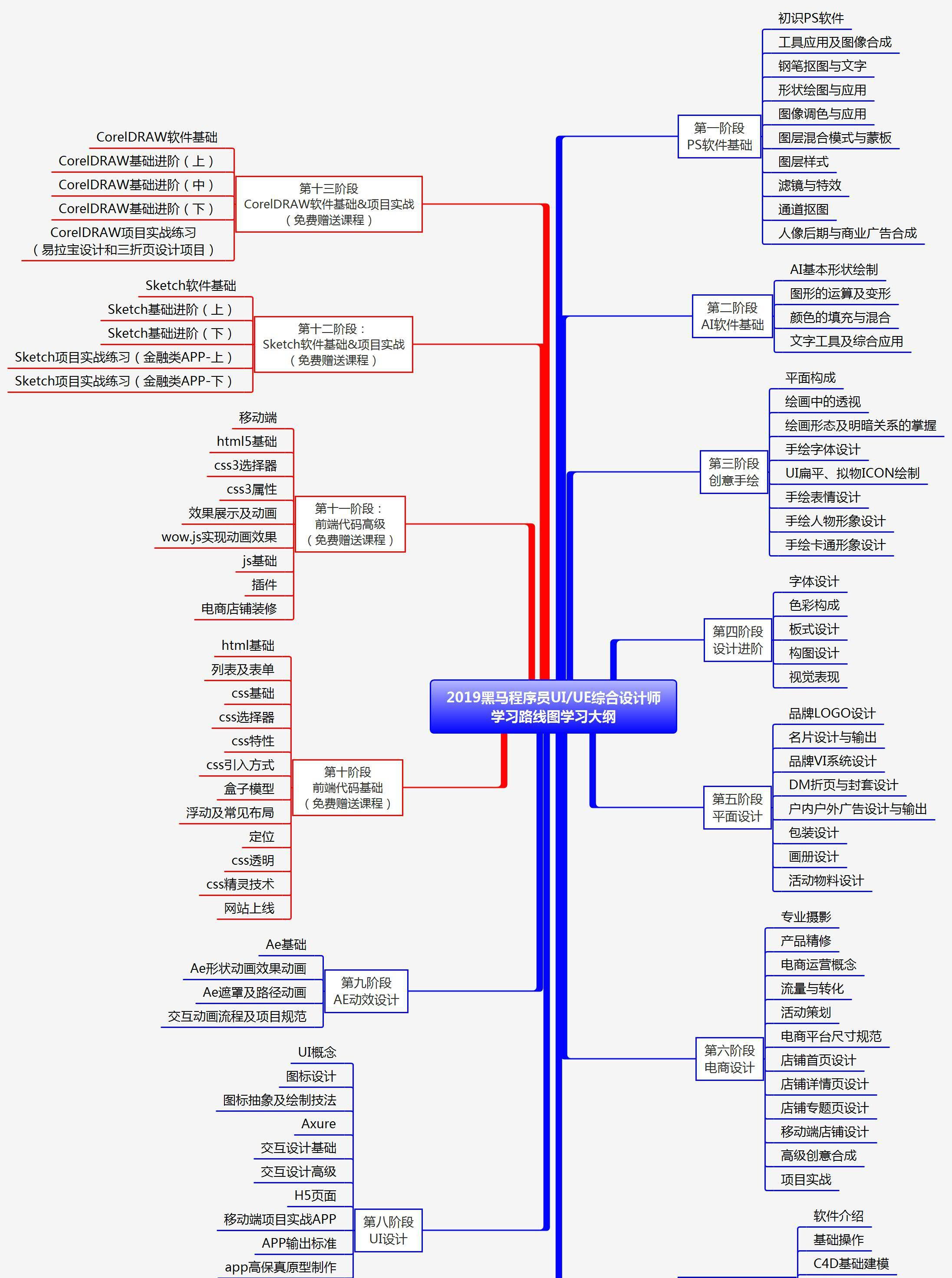 最后,黑马君为UI初学者准备了UI学习知识点图,帮助你清晰了解学习路线规划,仅供参考。