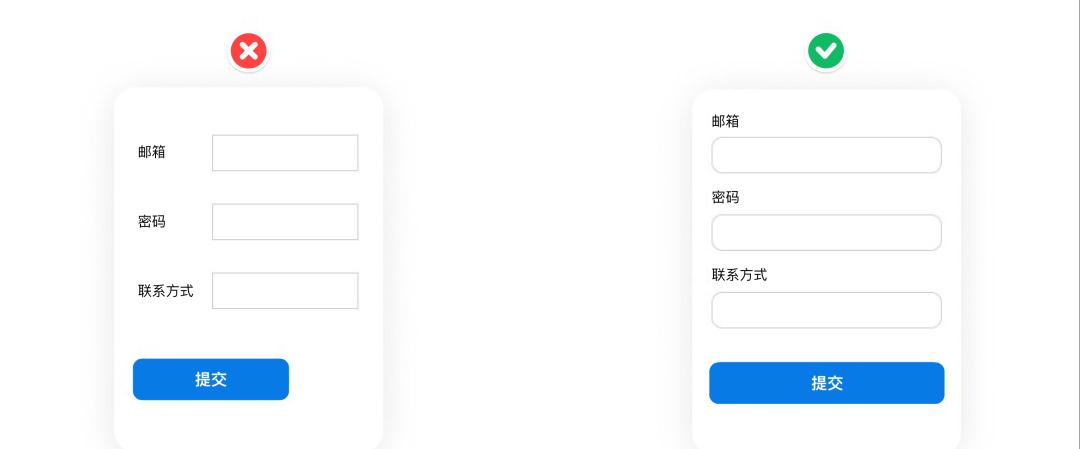特别是在表单设计中,左侧标题和输入框对齐的方式会显得不够统一。采用右侧水平对齐的排版方式,可以让页面更加整洁统一。