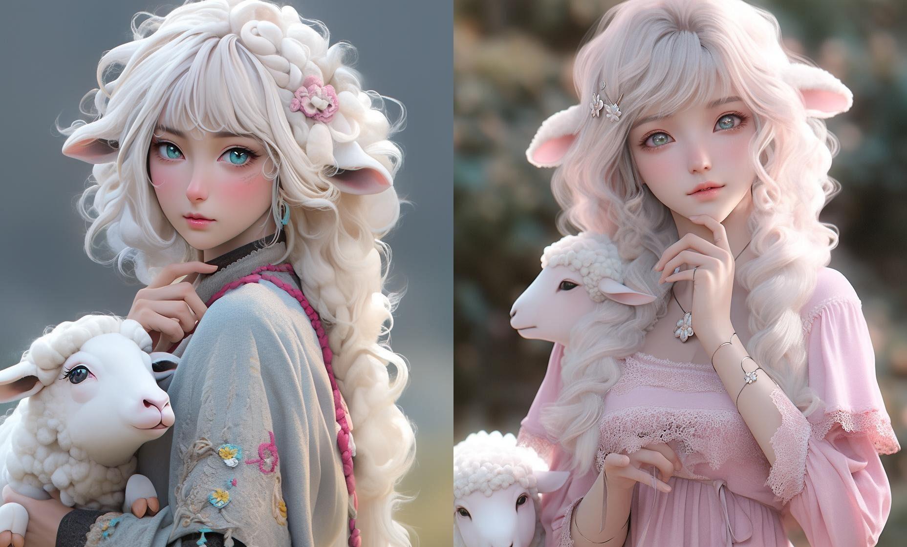无论是绵羊与美人的结合,还是色彩的搭配,都透露出一种独特的温柔与美好。这种风格独特的绘画,让人忍不住多看几眼,用心去感受其中的美妙。