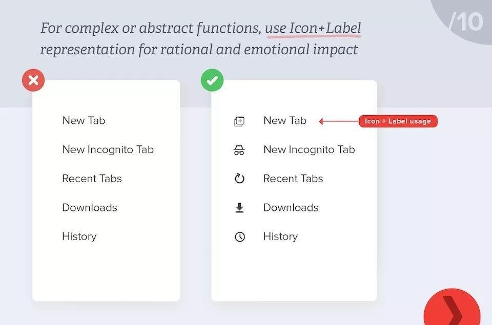 10.对于复杂或抽象的分类,使用图标+标签来表达理性和情感带来的心里认知。
