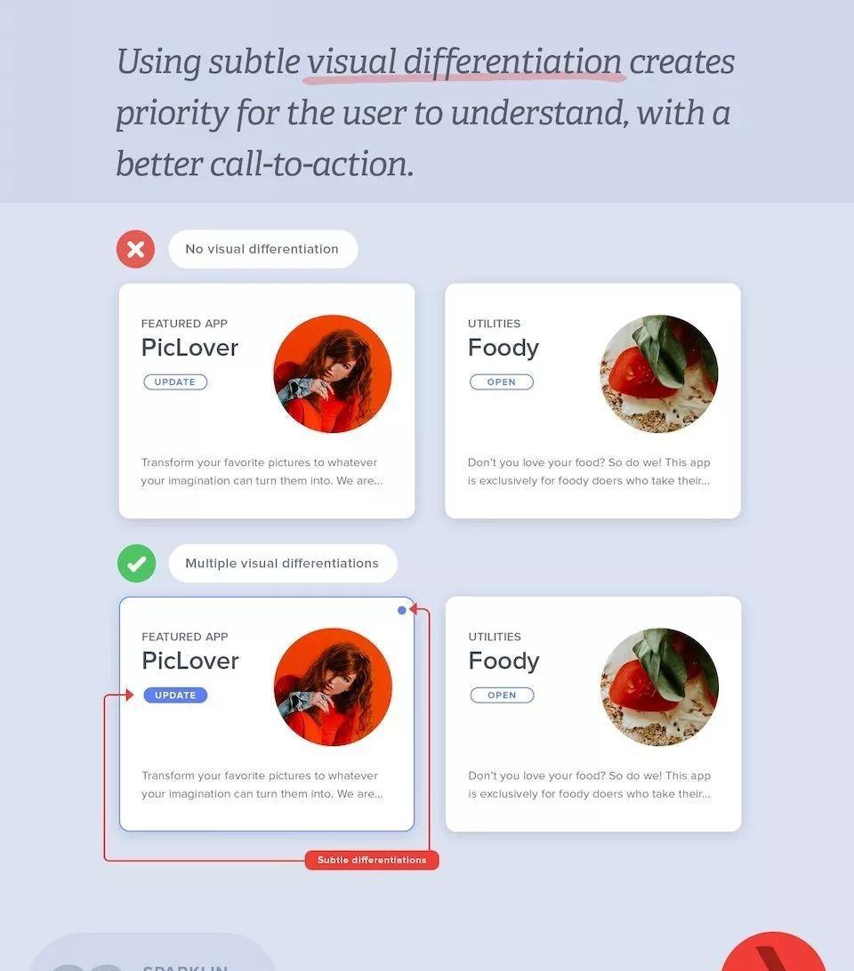 33.使用微妙的视觉差异为用户创造优先级,通过更好的CTA按钮。