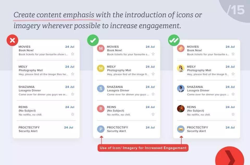 15.在设计可行性的条件下,通过加入图标或图形来增强内容。