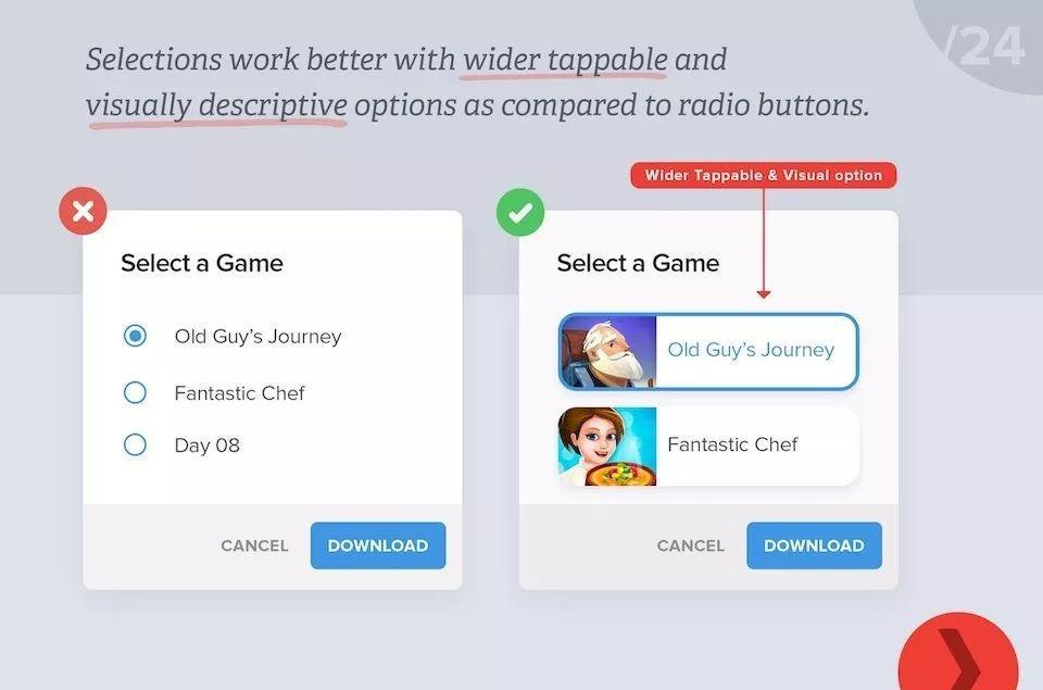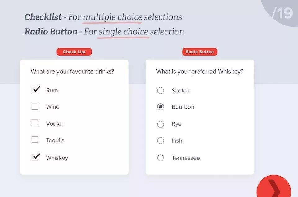 24.与单选按钮相比,选择效果更好、具有更广泛的可点击和视觉描述选项
