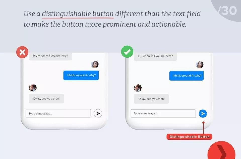 30.使用与文本字段不同的可区分按钮,使按钮更加突出和可操作。