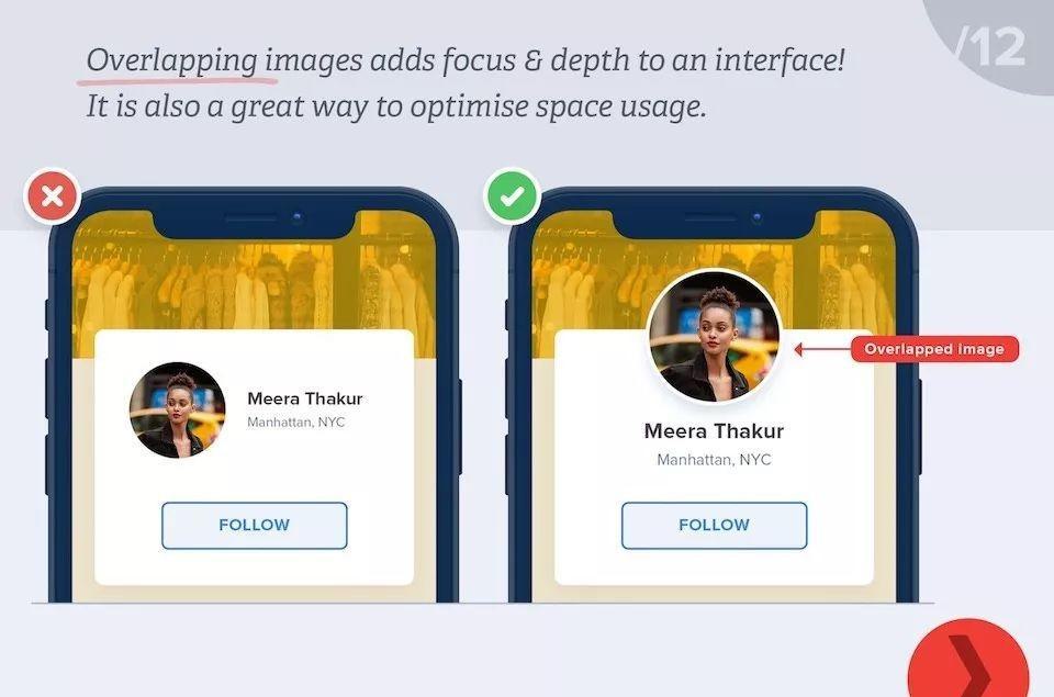 12.重叠的图像增加焦点和界面的深度,这也是优化界面空间感的好方法。