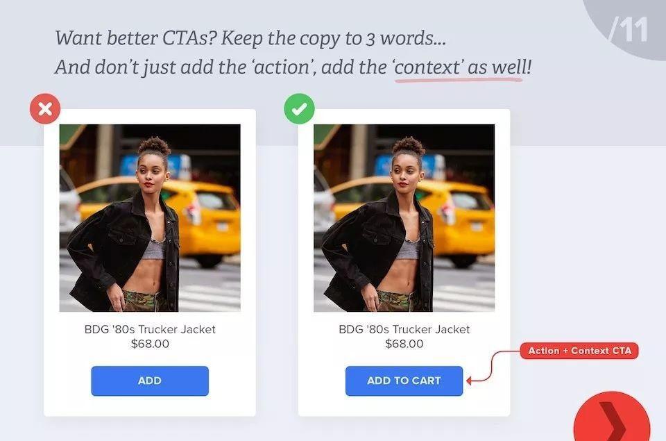 11.想要设计更好的CTA按钮?尽可能的把文本控制在3个单词以内。不要只添加动作,还需要更具上下文内容确定按钮的文本。