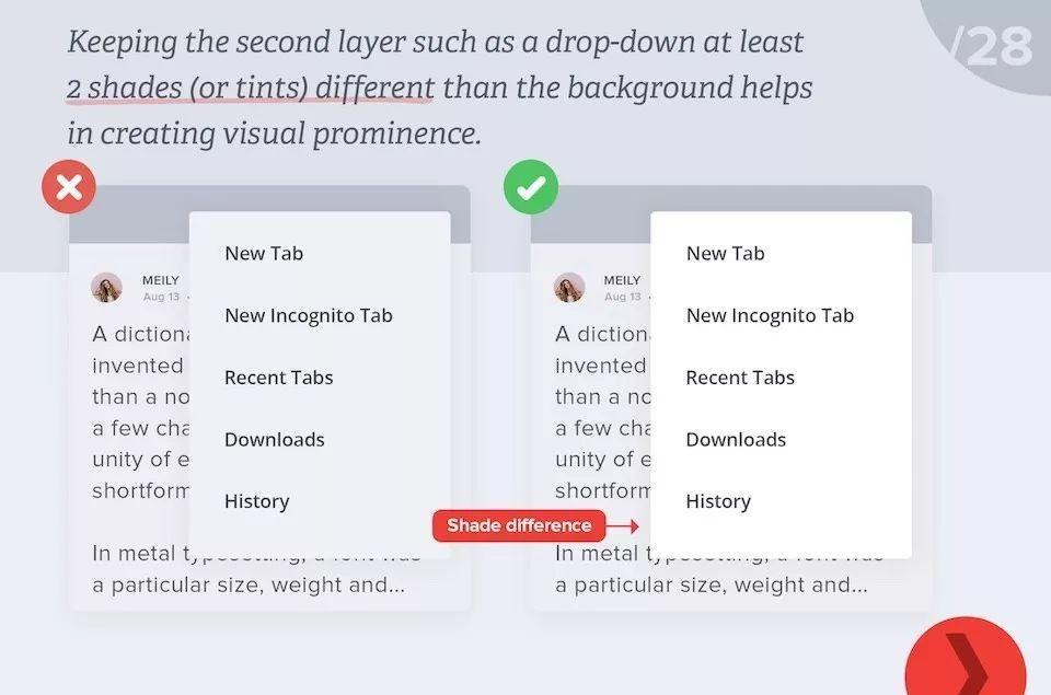 28.弹出层(例如下拉菜单)至少2种不同于背景的色调(对色调)会更有助于视觉突出。