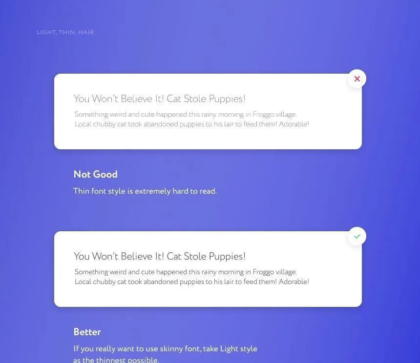 轻、薄、细体字需慎用,避免给用户阅读带来困扰,影响阅读体验。