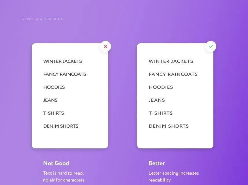 在使用全大写字母时,别忘了设定合适的字母间距,避免字符粘连,提升文本可读性。