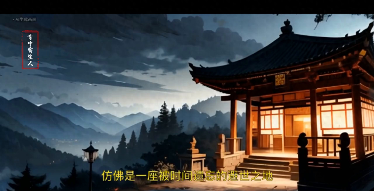 在古老的山间有一座古朴而神秘的寺庙,名为"灵心寺"。这座寺庙隐藏在郁郁葱葱的森林深处,被茂密的树木和苍翠的竹林环绕着,仿佛是一座被时间遗忘的避世之地。