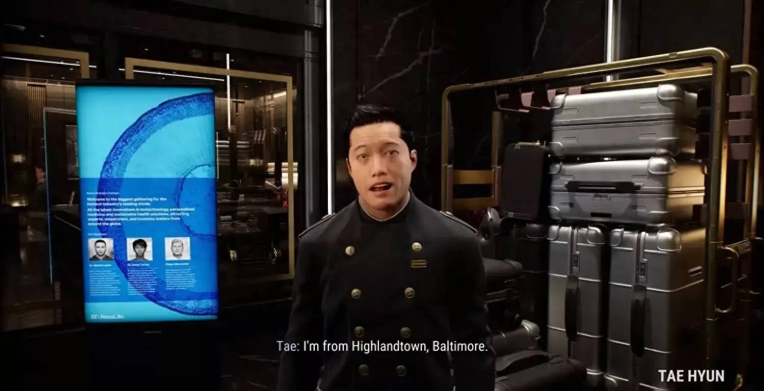 在2024年的主题演讲中,NVIDIA首席执行官黄仁勋播放了一段《Covert Protocol》的简短预告片/解说,这是与人工智能 SDK 开发商 Inworld AI 合作的技术演示。Covert Protocol 是 Inworld 正在构建的人工智能增强开发平台的代号。它使用虚幻引擎 5 并利用NVIDIA的多项AI技术(包括自动语音识别和面部动画)来提供逼真的角色,这些角色可以说话、做出反应并与周围环境实时互动。