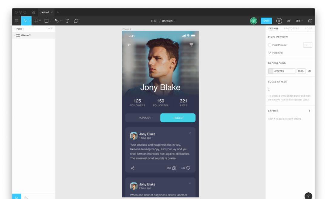 另一款值得关注的软件是AdobeXD。支持中文,拥有全面的设计功能,包括设计、交互原型、代码输出等。与Figma类似,且免费使用。