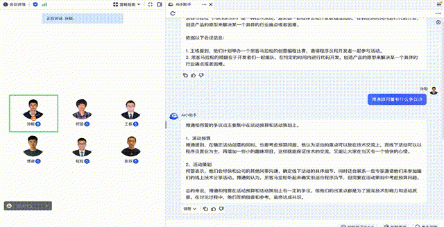 此外,腾讯混元大模型可与腾讯会议、腾讯文档、腾讯广告等产品结合使用,例如,在腾讯会议中打造AI小助手,实现会中问答、摘要生成以及会议待办事项管理,提升会议效率。