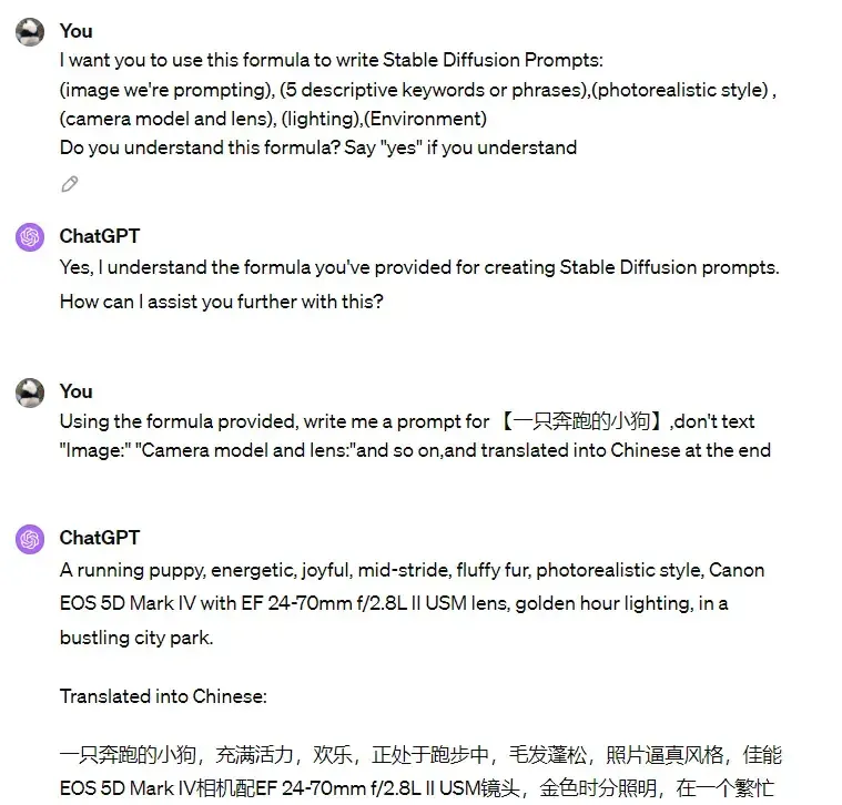 注意确保ChatGPT输出的prompt和Stable Diffusion的指令格式一致。